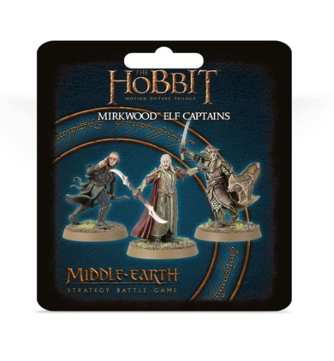 The set contains three resin miniatures – a Palace Guard Captain, a Mirkwood Ranger Captain and a Mirkwood Armoured Captain – supplied with 3 Citadel 25mm Round Bases. Their rules can be found in Armies of The Hobbit™.