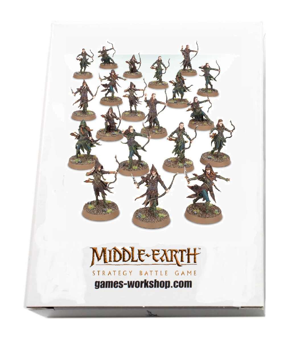 The contents of this box make 20 Mirkwood Rangers, of which 10 are male and 10 are female. You can tell them apart, particularly by the fact that the female Elves have curved bows. Each miniature is made in a fixed pose, and the whole set are designed to look like skirmishers. Each model is armed with a bow and daggers.