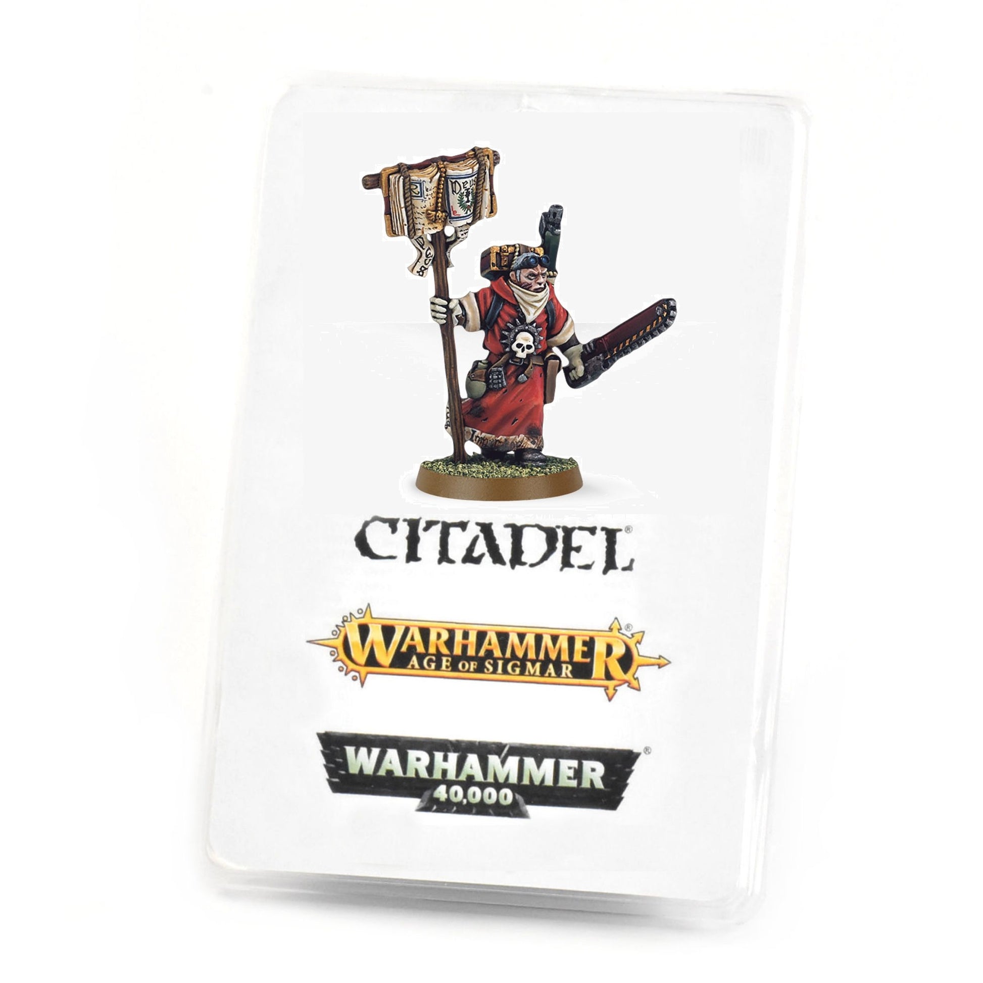 This pack contains one Missionary with Chainsword - a finely detailed metal miniature that comes in three components, and is supplied with a 25mm round base. This miniature is supplied unpainted and requires assembly - we recommend using Citadel Super Glue and Citadel Paints.