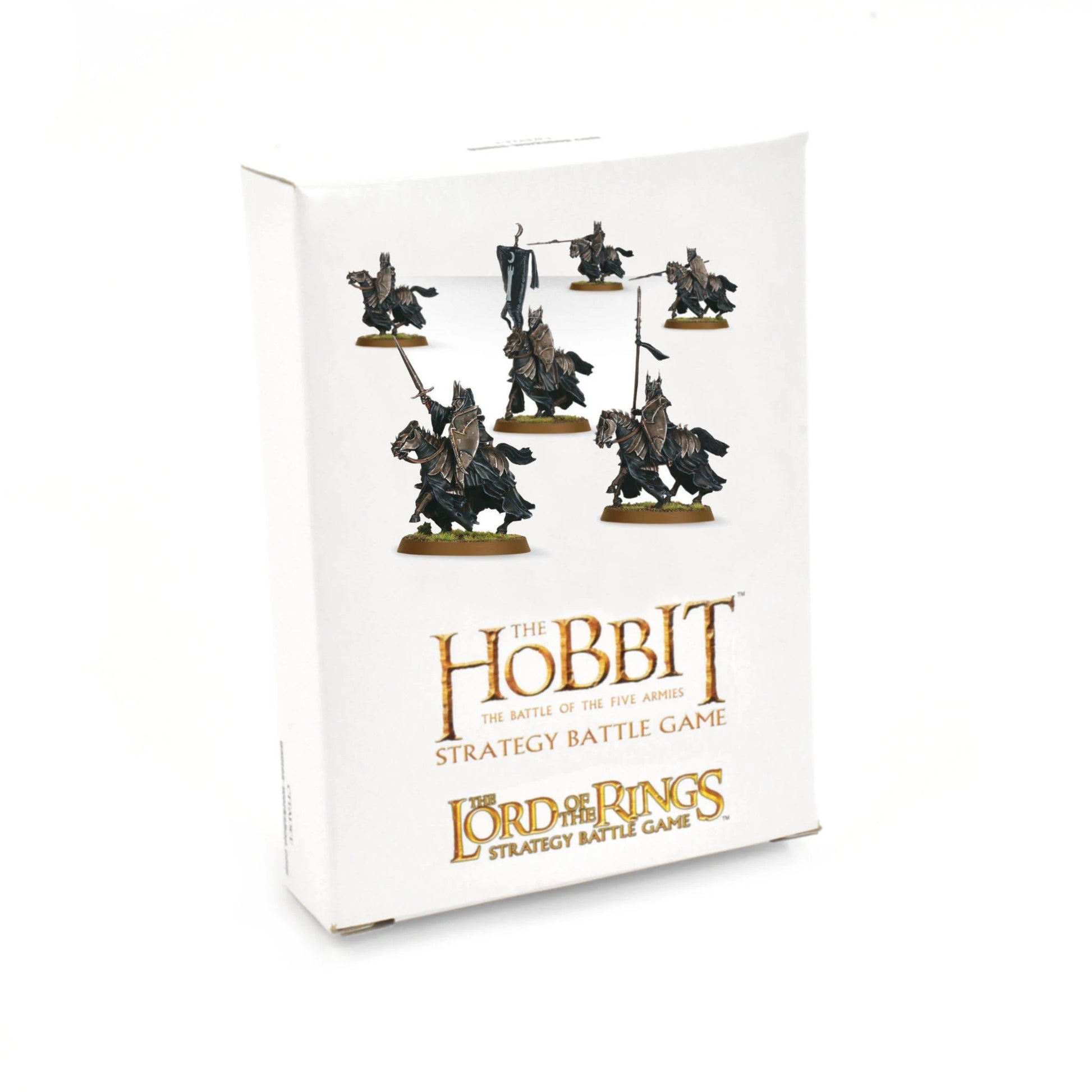 This box set contains 6 plastic Morgul Knights. This 40-piece set includes 6 different Morgul Knight bodies, 6 different helmets, 3 variations of horse, 6 different lance arms, a sword arm, 3 variations of shield, and a banner with sculpted detailing. Models supplied with 40mm round bases.