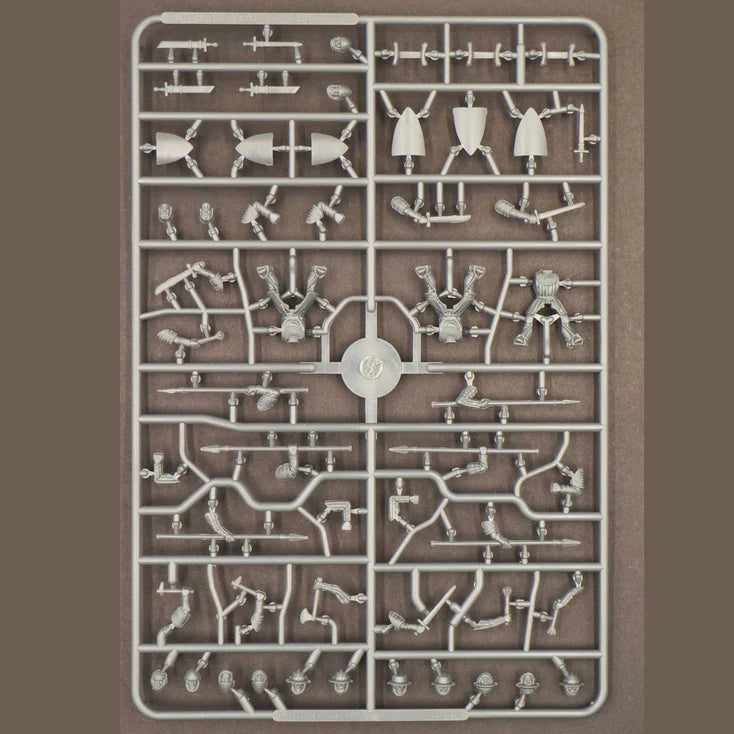 This hard plastic box set allows you to build up to 12 mounted serjeants with a variety of weapons including sword, ax, mace, spear, and falchion with two sizes of shields. 15 unique heads provide for massive customization. Arms and heads are also compatible with WAAAC002 Foot Serjeants.
