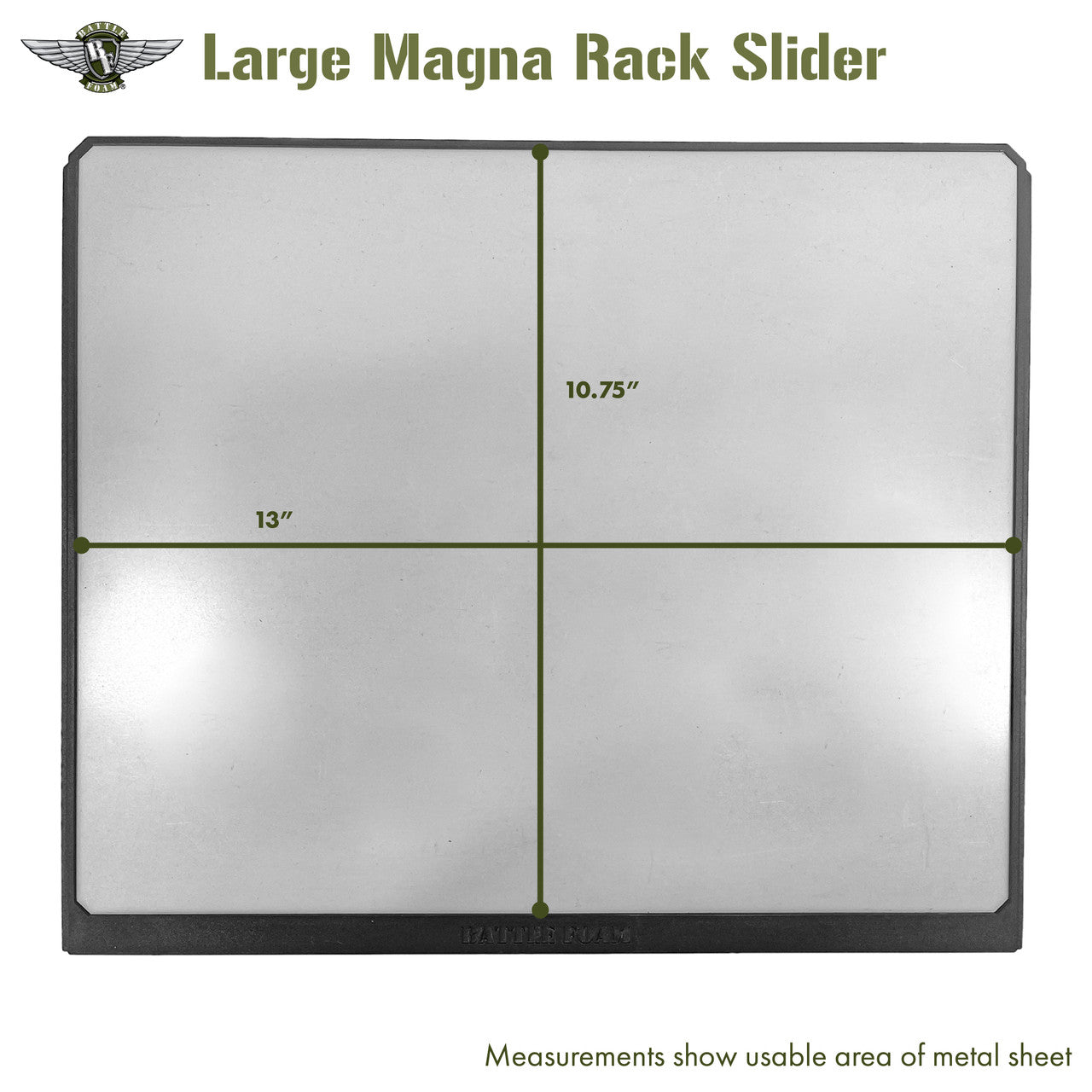 All trays are made of heavy duty injected molded plastic with an attached durable metal sheet, ideal for magnetized models. Magna Racks can be assembled in an endless number of configurations using the patented Magna Rack Spacer Legs.