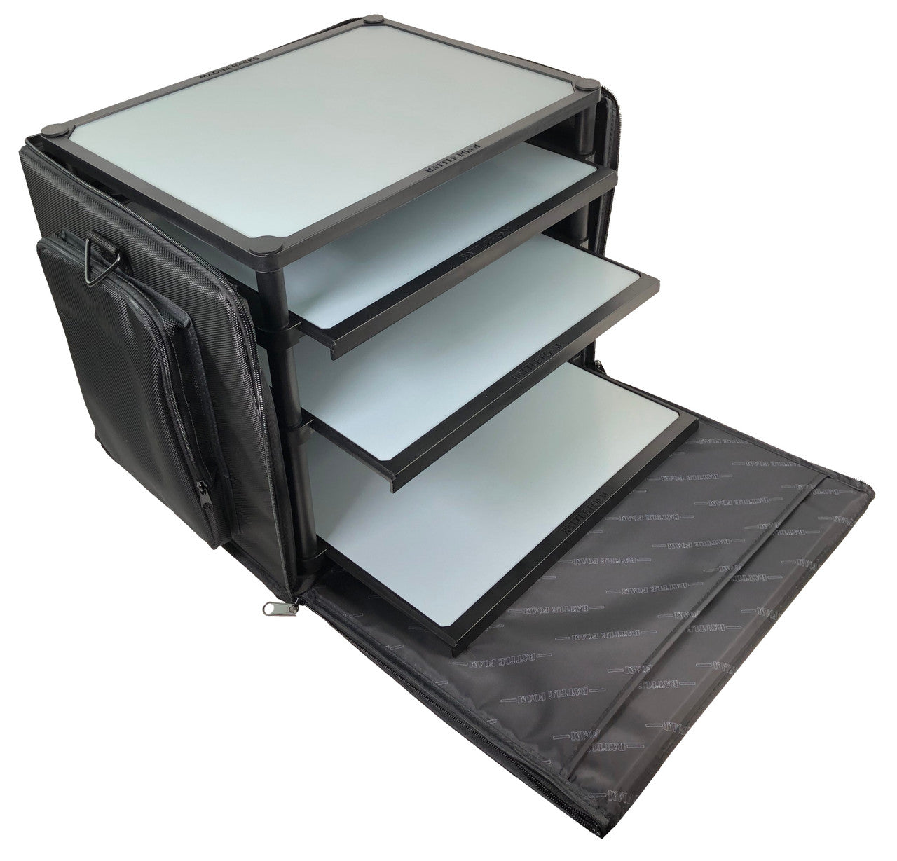 The Magna Rack Sliders Trays have been designed for gamers who like to store and transport their miniatures that have been magnetized. Magnetized models allow you to store your miniatures upright protecting them from rubbing on other materials. Sliders allow for easy access to your models. And because they are completely removable you can go from tray to table and back again with ease.